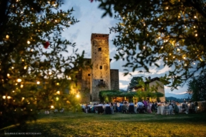 Da 700 anni appartiene alla stessa famiglia che lo ha conservato e restaurato. Il castello è dimora storica privata – non aperta al pubblico. L’ ambiente é rude ma estremamente suggestivo ed offre molti spazi originali per i vari momenti di un ricevimento: aperitivo, pranzo, cena, dopo cena, ballo, musica e ancora… per ciascuno di questi momenti si può scegliere il luogo adatto sempre diverso… all’ interno nelle sale con i grandi camini, i soffitti affrescati o dalle antiche travature in legno, all’esterno negli spazi luminosi e fioriti immersi in una natura intatta, protetti dalle pietre delle mura e delle torri.